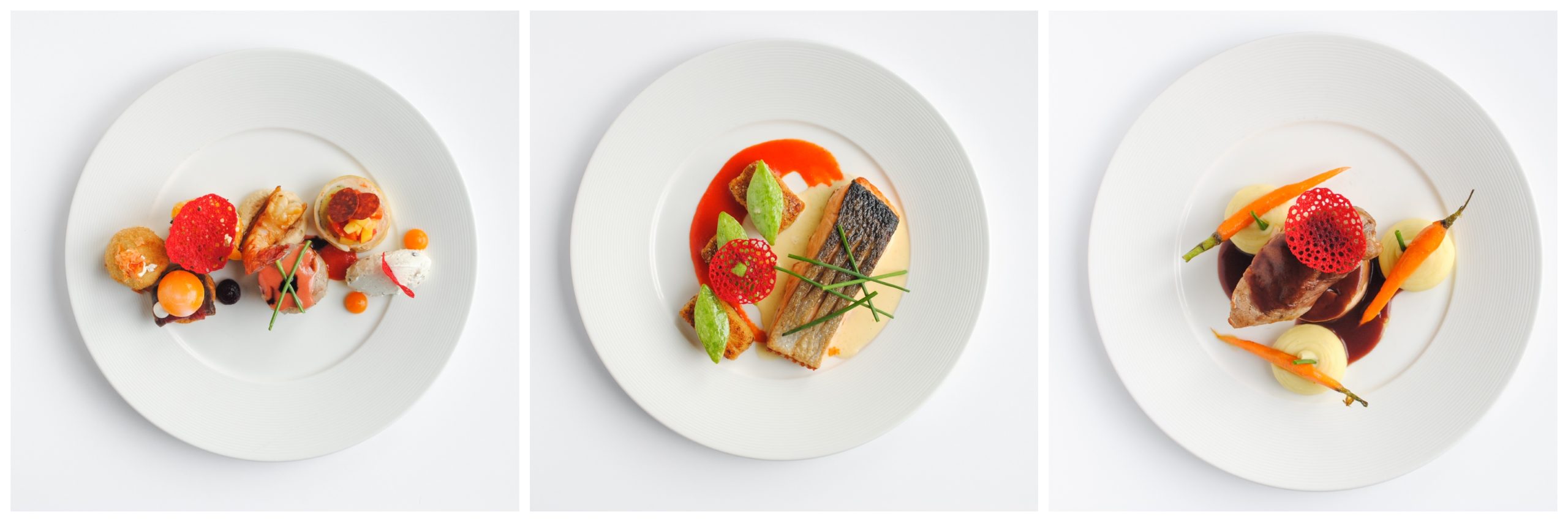 File de somon în crustă de ierburi aromatice cu gălușcă de cartofi, mix de legume și sos de lime cu capere